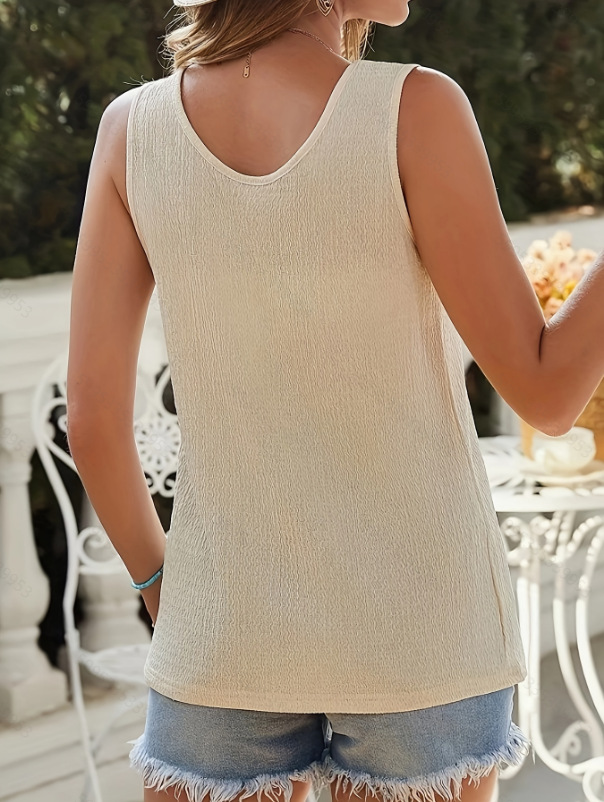 Fashionable Textured Button Loose Casual Round Neck T-shirt For Women