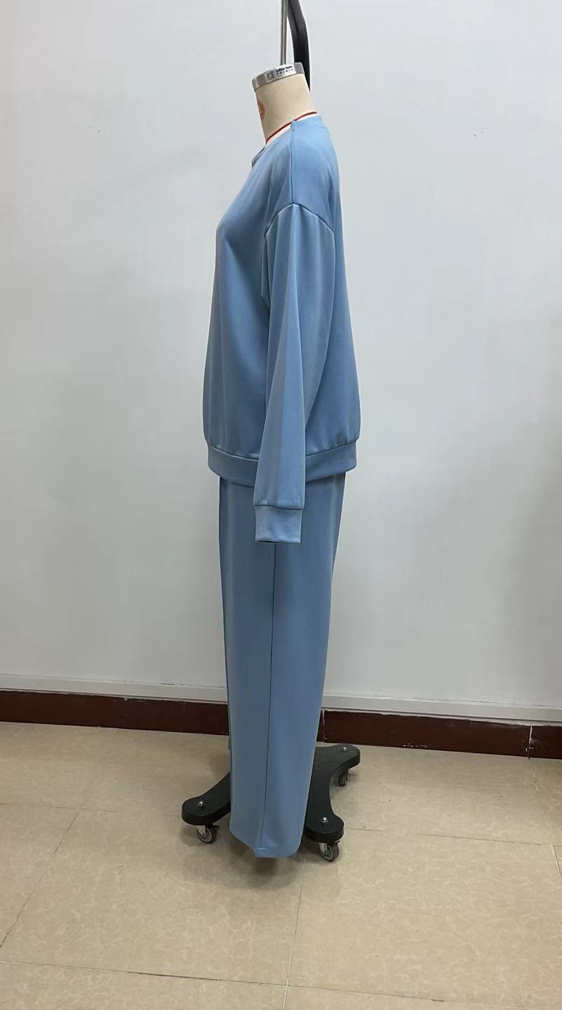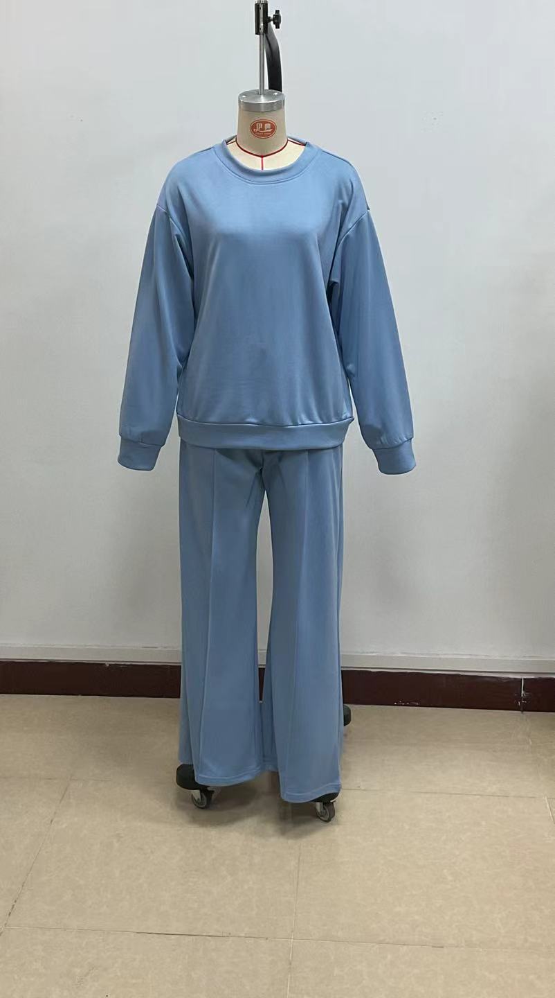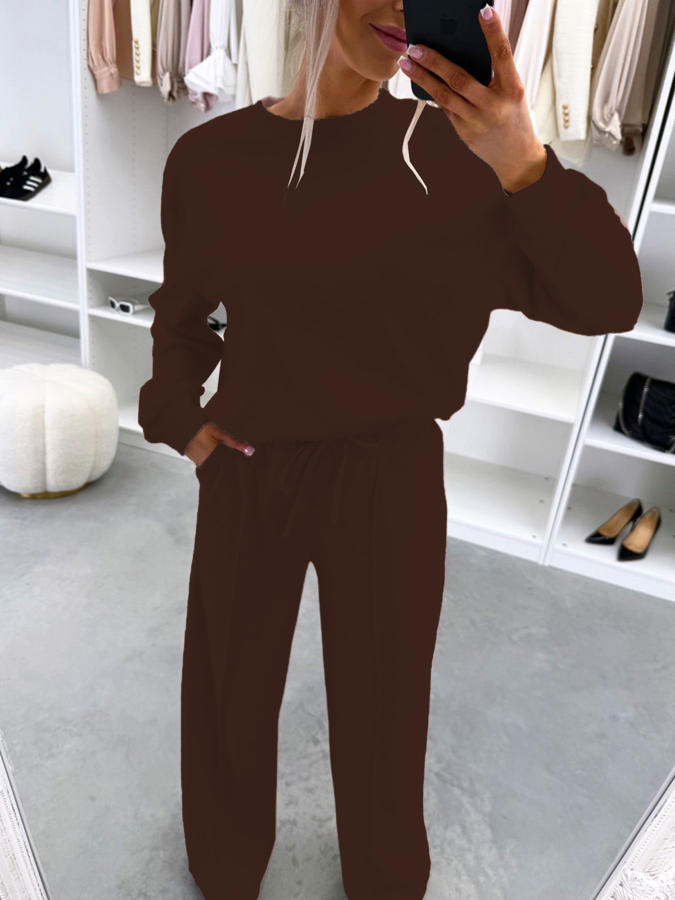 Home-style Drop-shoulder Long-sleeve Top And Casual Pleated Trousers Two-piece Set