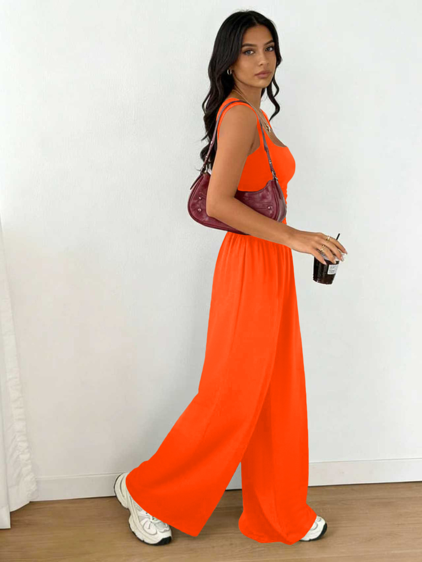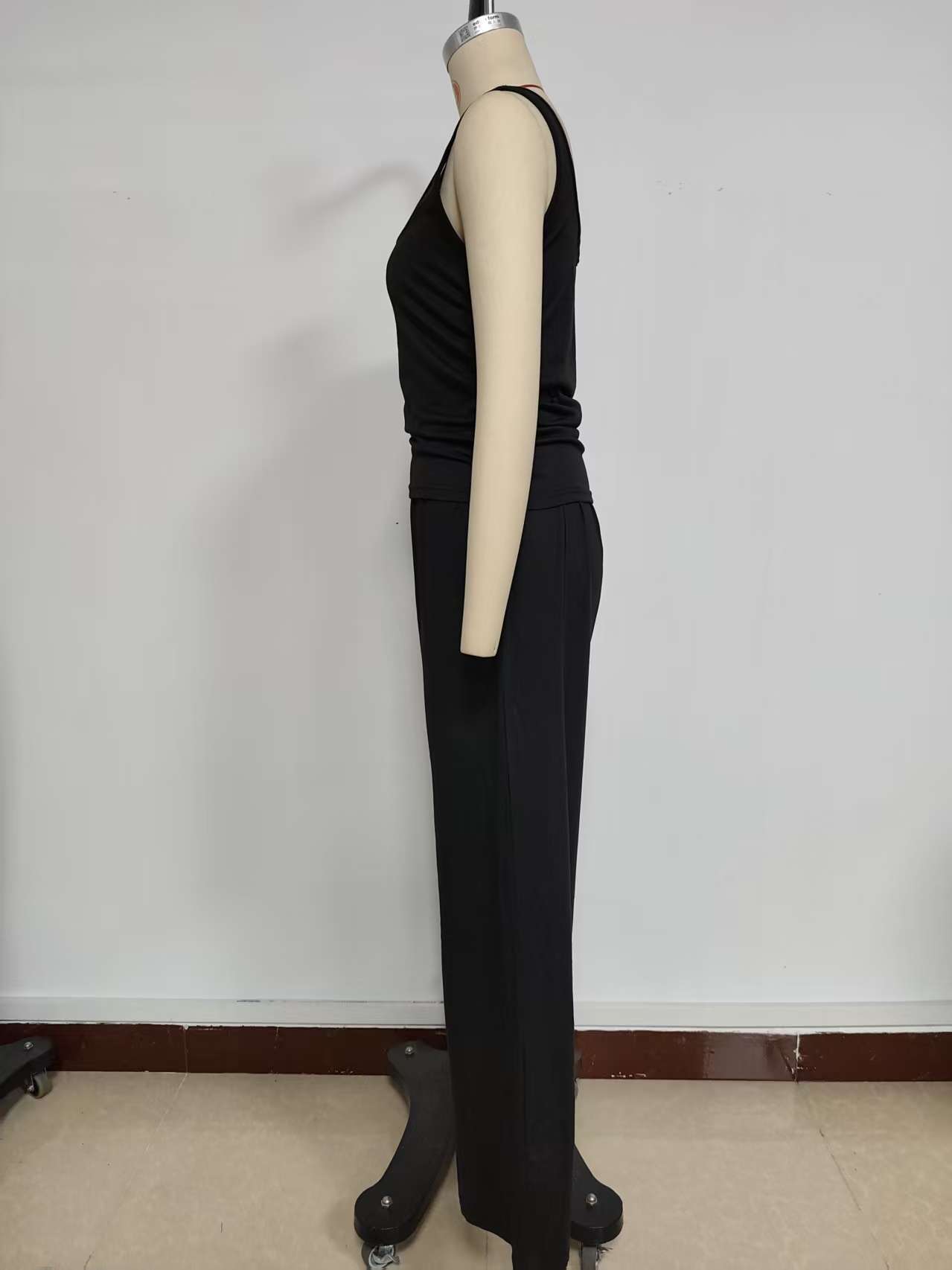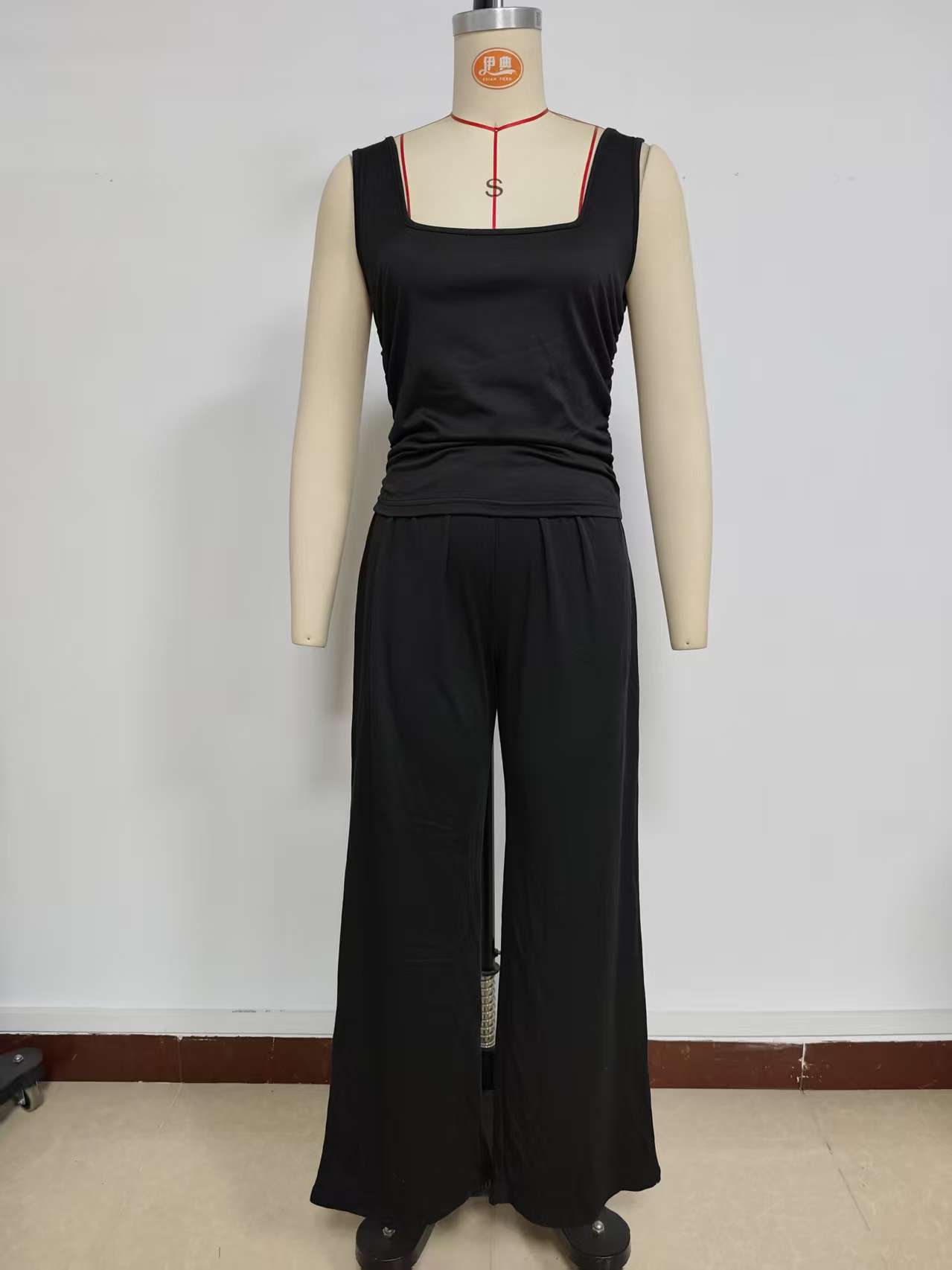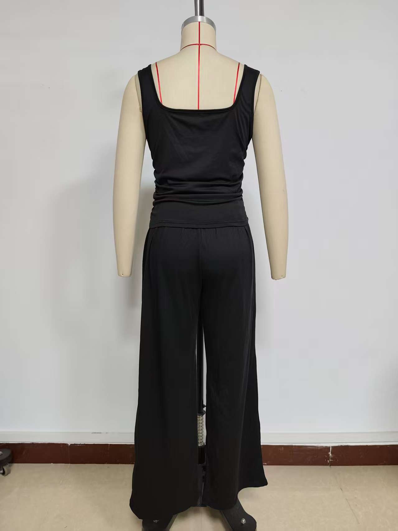 Solid-Color Sexy Tank Top Casual Wide-Leg Pants Two-Piece Set