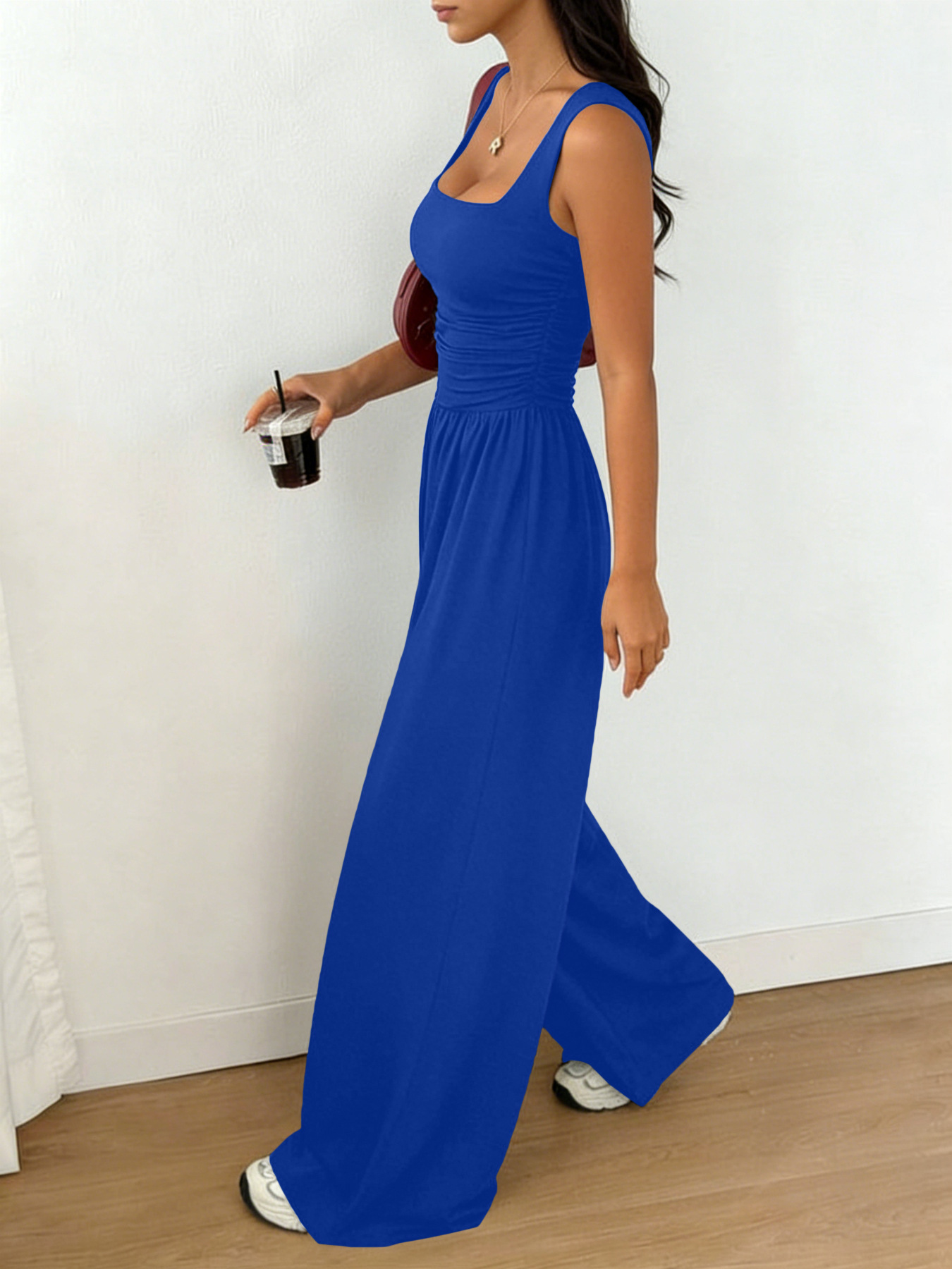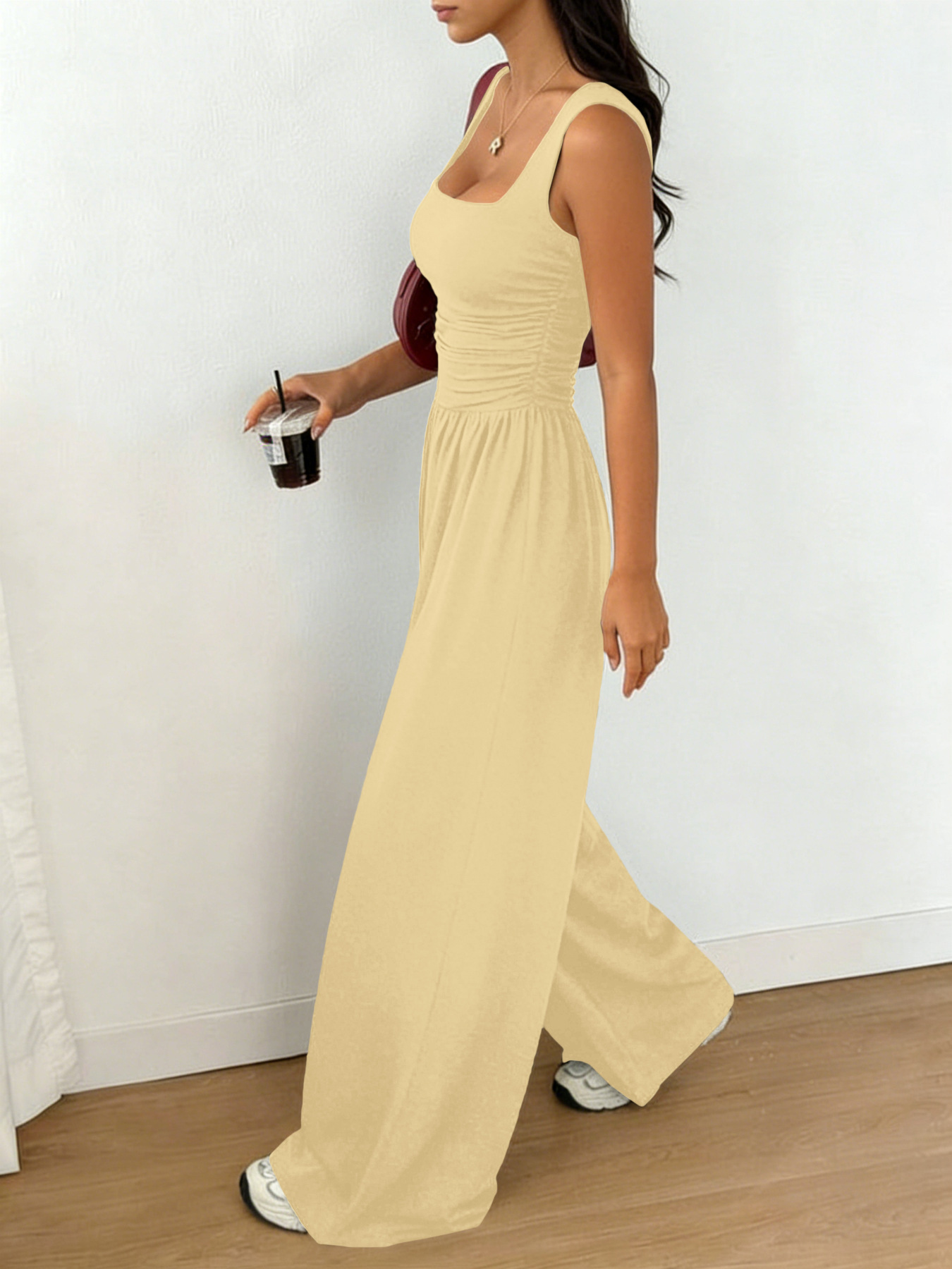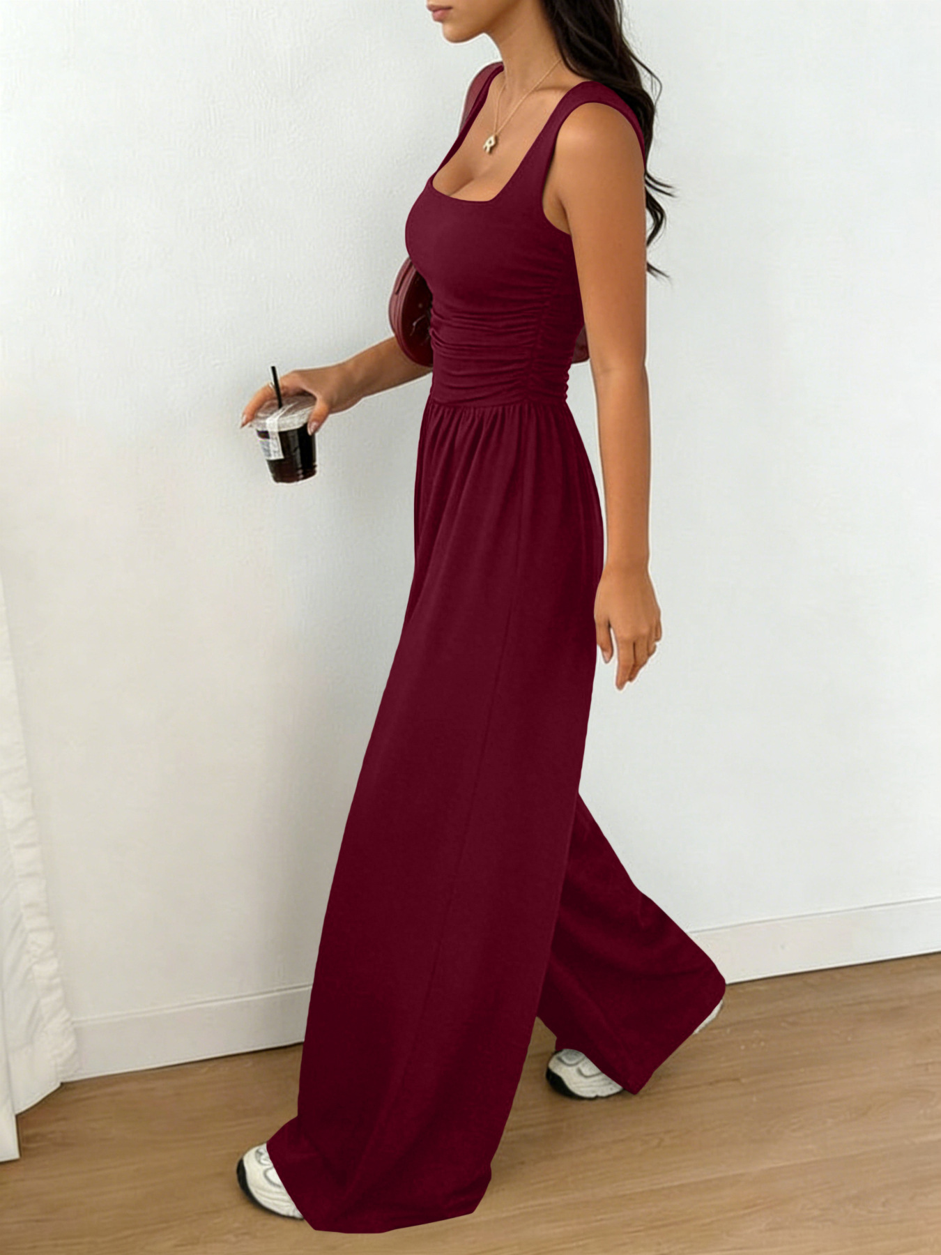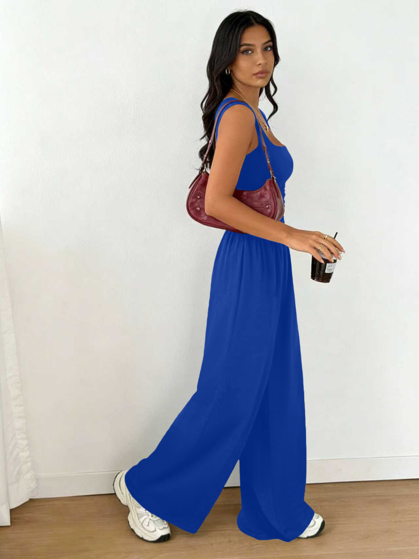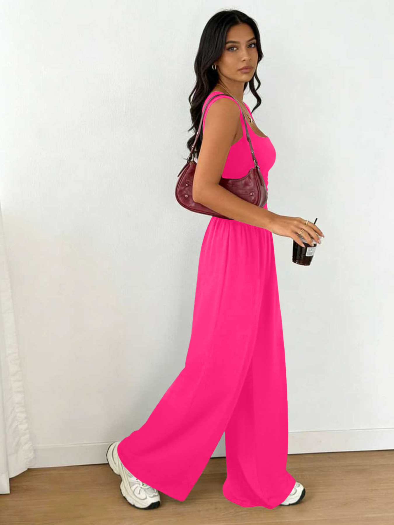 Solid-Color Sexy Tank Top Casual Wide-Leg Pants Two-Piece Set