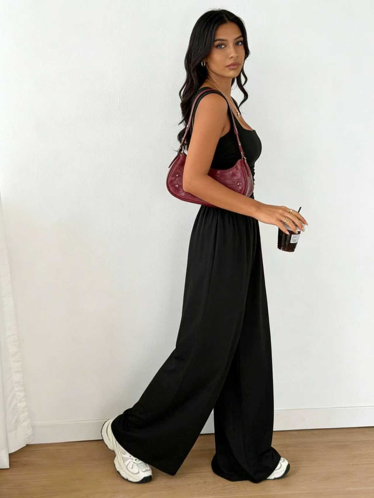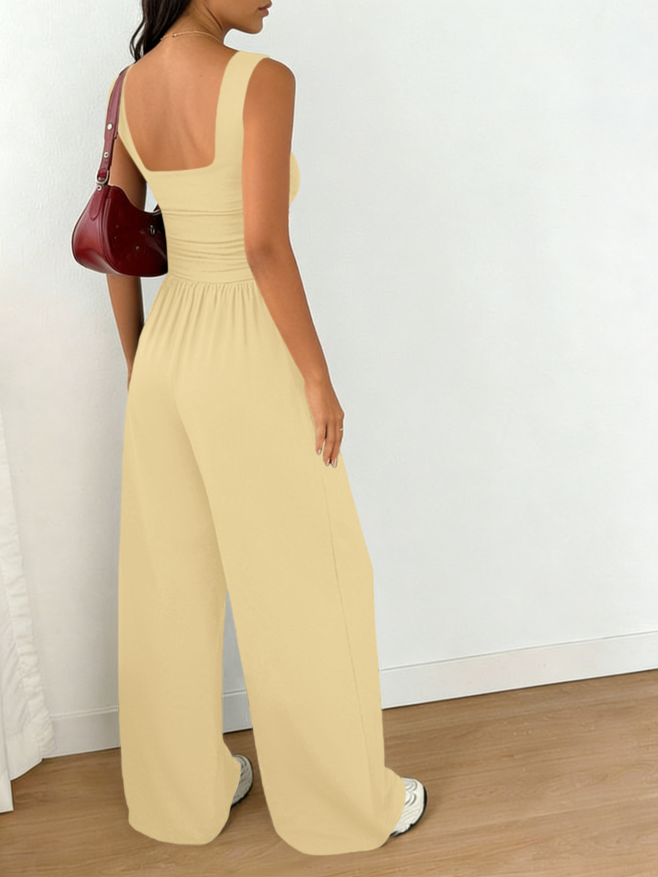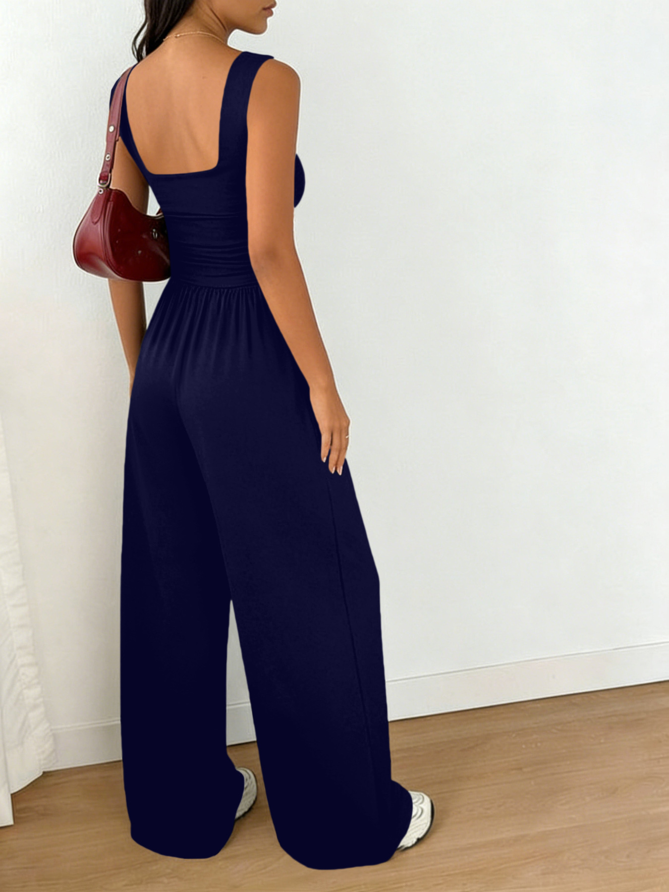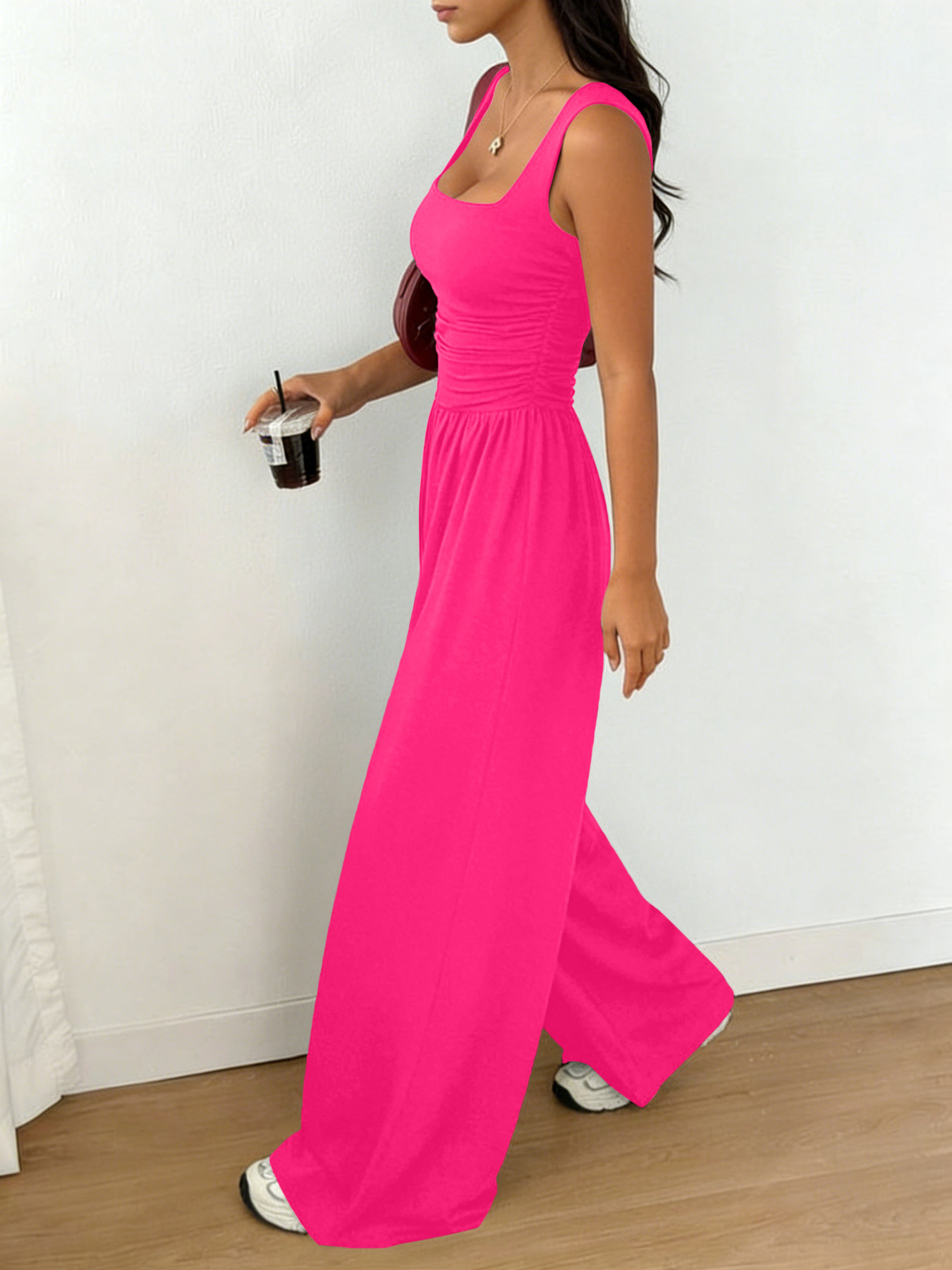 Solid-Color Sexy Tank Top Casual Wide-Leg Pants Two-Piece Set