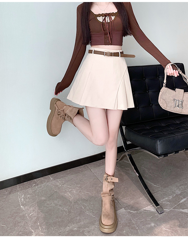 Features: High Waist, Slim Fit, Pleated Design, Slight Stretch, Three-dimensional Embossed Pattern, Patchwork Construction