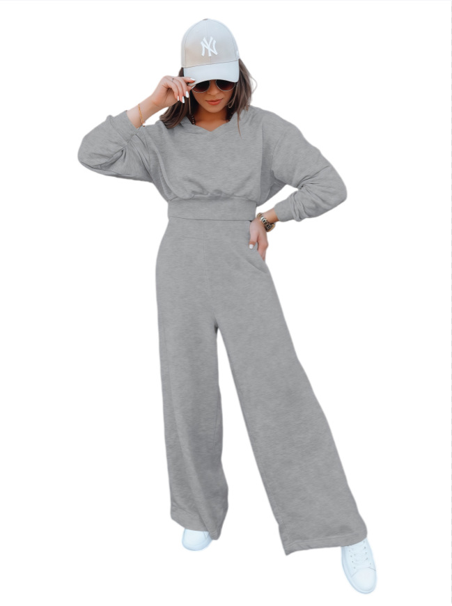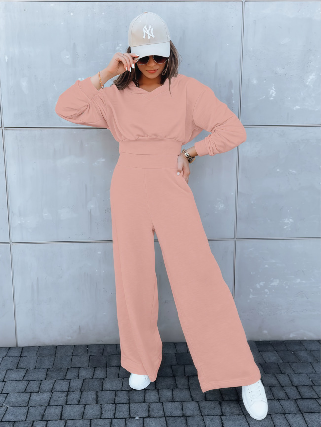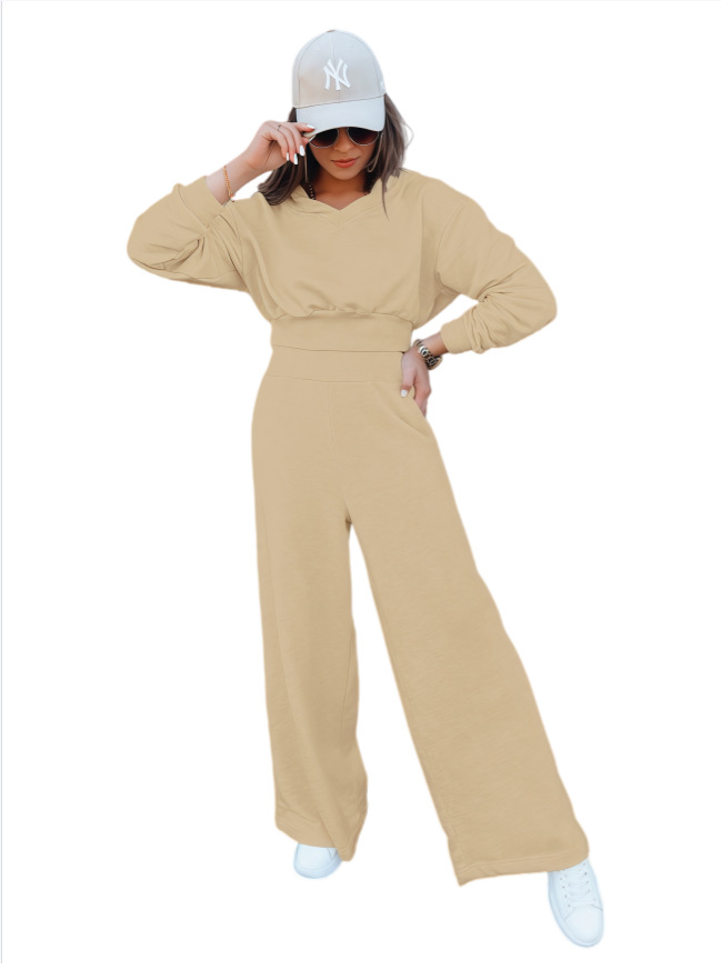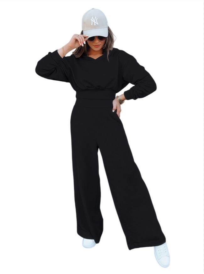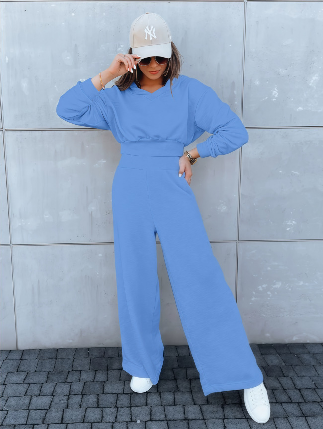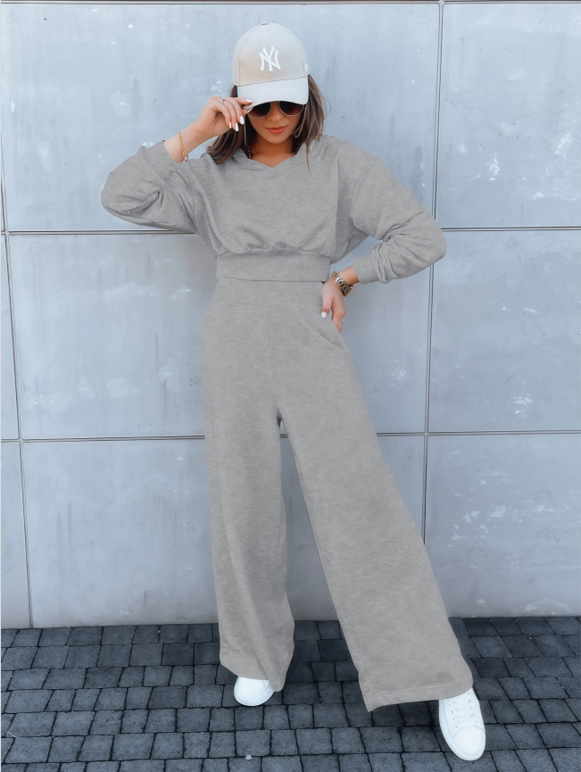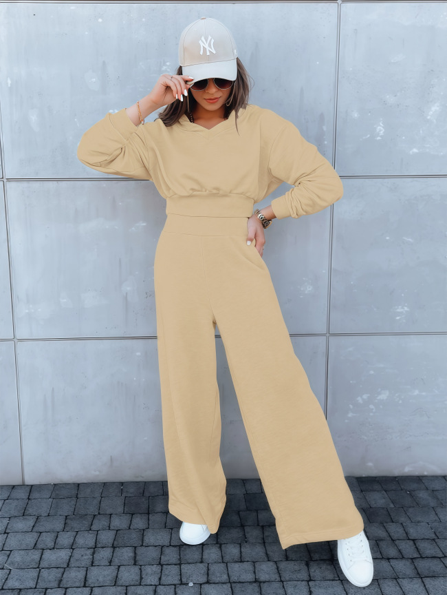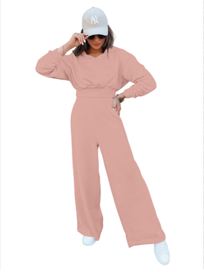 Wide-leg Pants And Hooded Sweatshirt Casual Set